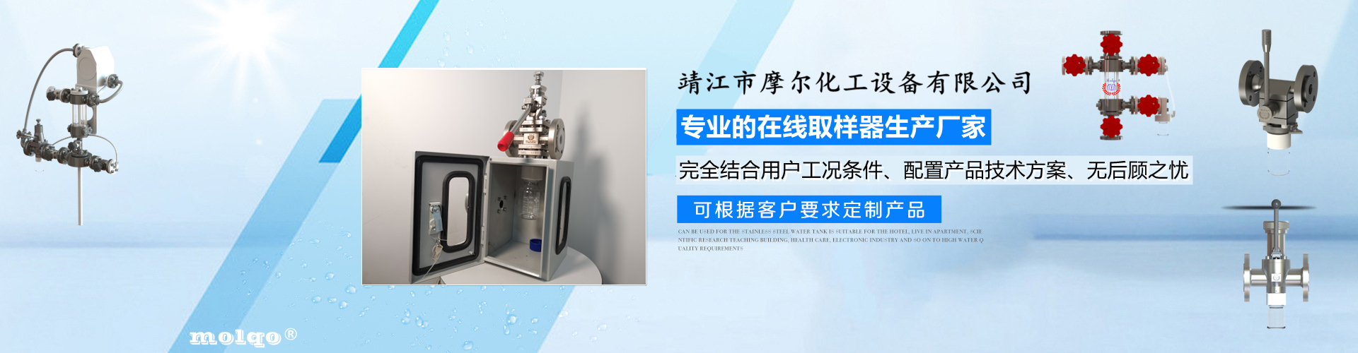 靖江市摩爾化工設(shè)備有限公司位于蘇中明珠——江蘇省靖江市城南工業(yè)園區(qū)東進(jìn)路北側(cè)天元艾爾瑞內(nèi),另有生產(chǎn)基地位于靖江市經(jīng)濟(jì)技術(shù)開發(fā)區(qū)新號路1號鼎電科技園內(nèi)。我公司由數(shù)名長期從事化工生產(chǎn)、氟塑襯里模具開發(fā)以及機(jī)械自控設(shè)備的專業(yè)人員共同合作成立,致力于提供客戶最優(yōu)的高效在線取樣、反應(yīng)及精餾分離設(shè)備,為客戶提供合理的設(shè)備選型方案,以幫助客戶提高綜合生產(chǎn)效率以及改善生產(chǎn)現(xiàn)場環(huán)境為目標(biāo)。 本公司主要制造及銷售的產(chǎn)品有:釜用在線取樣裝置,管道取樣閥,釜用清洗噴淋裝置、搪玻璃設(shè)備、GMP專用搪玻璃設(shè)備、氟塑襯里設(shè)備、攪拌器、釜用機(jī)械密封、氣動閥門及搪玻璃管道、襯氟閥門管道、非標(biāo)不銹鋼容器,精餾塔塔器、片式冷凝器及PTFE密封件、鋯、鈦、鉭、鎳等加工件制品。我司是一家集研發(fā)銷售、設(shè)計(jì)咨詢服務(wù)于一體的專業(yè)···